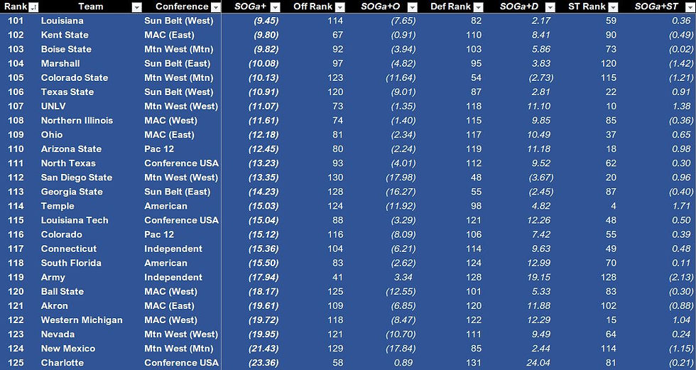 Post Week-7 SOGa+ College Football Rankings