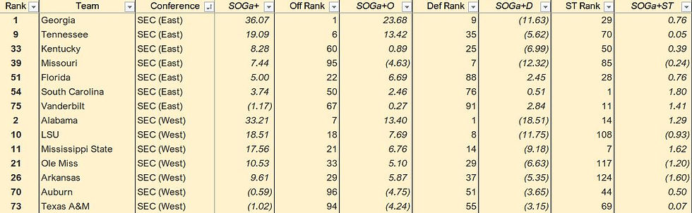 Post-Week 8 SOGa+ Rankings - Conference